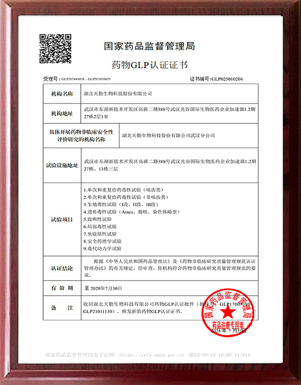 天勤生物有強大的項目承接能力,目前投入使用的有近3萬多平方米符合GLP規范的實驗室,還有約八萬平米在建的實驗場地,可開展基于猴、犬、兔、大鼠、小鼠、豚鼠等實驗動物的試驗研究;有國際接軌的技術體系,GLP實驗室滿足國內、美國FDA、歐盟OECD、澳洲TGA等國際GLP標準,并通過國際AAALAC全面認證;匯聚多位擁有20年以上項目經驗的新藥評審專家和資深GLP技術專家,確保技術方案及報告的科學性和規范性,同時骨干成員均在藥代動力學與藥理學以及毒理學領域擁有超過10年經驗,保障項目的高質量執行;3000余項專題研究、300多個新藥申報品種、100余項中外申報的品種通過中國CFDANMPA 、美國FDA和澳大利亞TGA的審批進入臨床或上市申請。