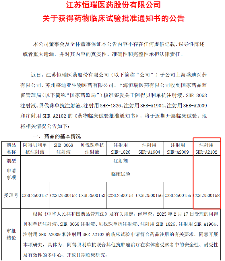 ADC雙星閃耀!天勤生物賦能恒瑞醫藥兩大抗腫瘤創新藥獲批臨床