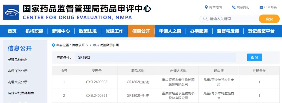天勤生物助力智翔金泰GR1802注射液兒童/青少年特應(yīng)性皮炎適應(yīng)癥獲批臨床